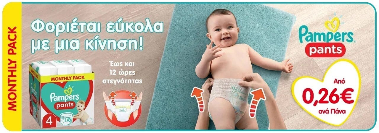 Πάνα βρακάκι Pampers Pants no4 9-15kg – 52τμχ JUMBO pack
