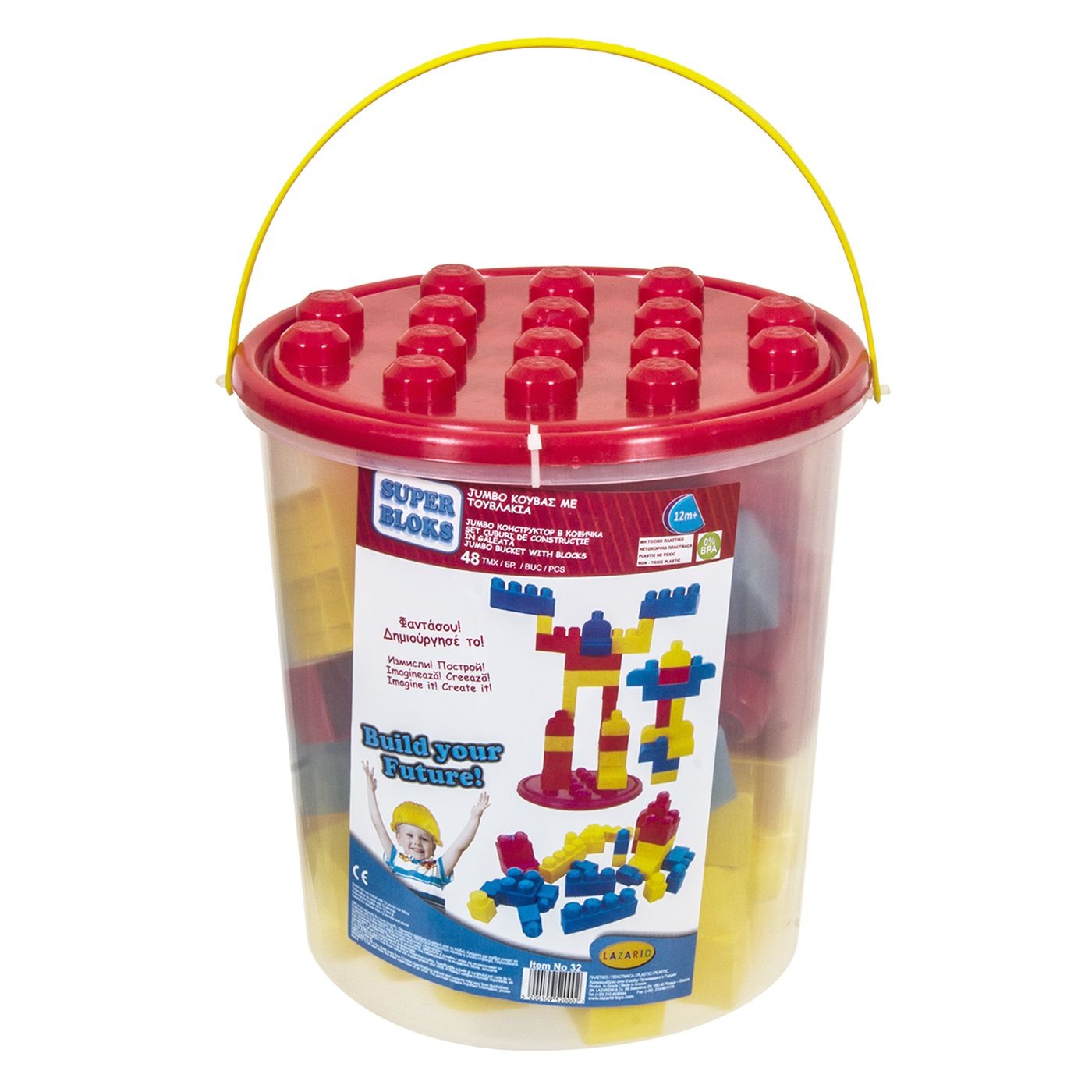 Κουβάς με 48 Μεγάλα Τουβλάκια για Αγόρι Διαμετρος 25cm x Υψος 26cm