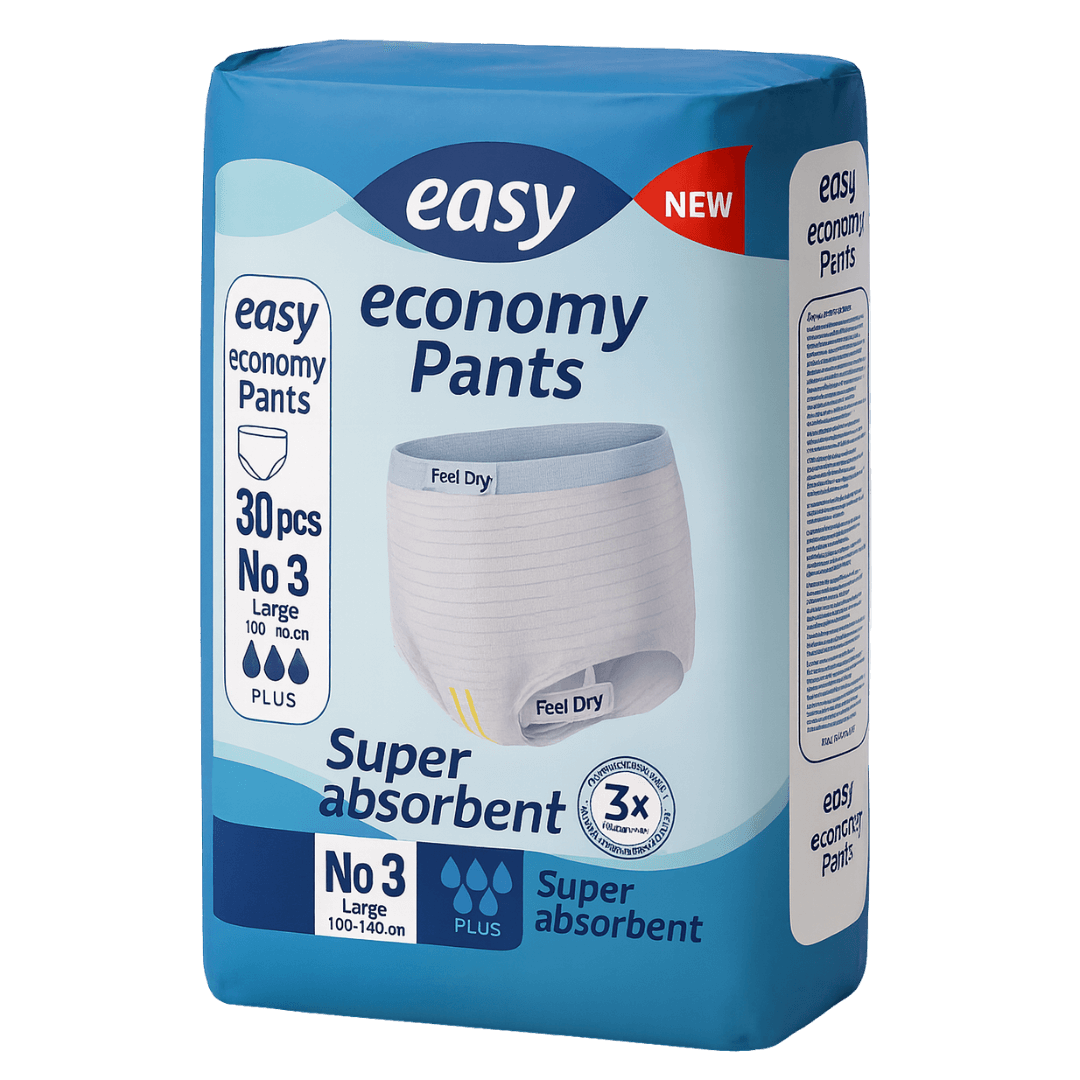 Τα Easy Pants Plus είναι απαλά προστατευτικά εσώρουχα μίας χρήσης με άνετη εφαρμογή. Με μια σειρά από καινοτόμα χαρακτηριστικά, προσφέρουν προστασία από τις διαρροές, τις οσμές και την υγρασία.