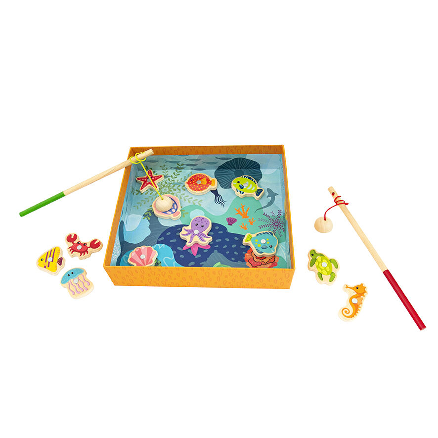 Το σετ αποτελεί ιδανική επιλογή για ατομικό παιχνίδι ή παιχνίδι σε ζευγάρια, αφού περιλαμβάνει 12 ξύλινους μαγνήτες θαλάσσιων ζώων και 2 καλάμια σε 2 διαφορετικά χρώματα, δημιουργώντας ουσιαστικά 2 ομάδες παιχνιδιού. Ποιο καλάμι θα ψαρέψει τα περισσότερα θαλάσσια ζωάκια; Ενθαρρύνετε το παιδί σας για παιχνίδι με τα αδέρφια και τους φίλους του στο βυθό του Magnet Box. Το παιδί μαθαίνει να συνδυάζει αντικείμενα με κοινά χαρακτηριστικά κι έτσι ενισχύεται τόσο ο συντονισμός ματιού-χεριού όσο και η κριτική του ικανότητα.