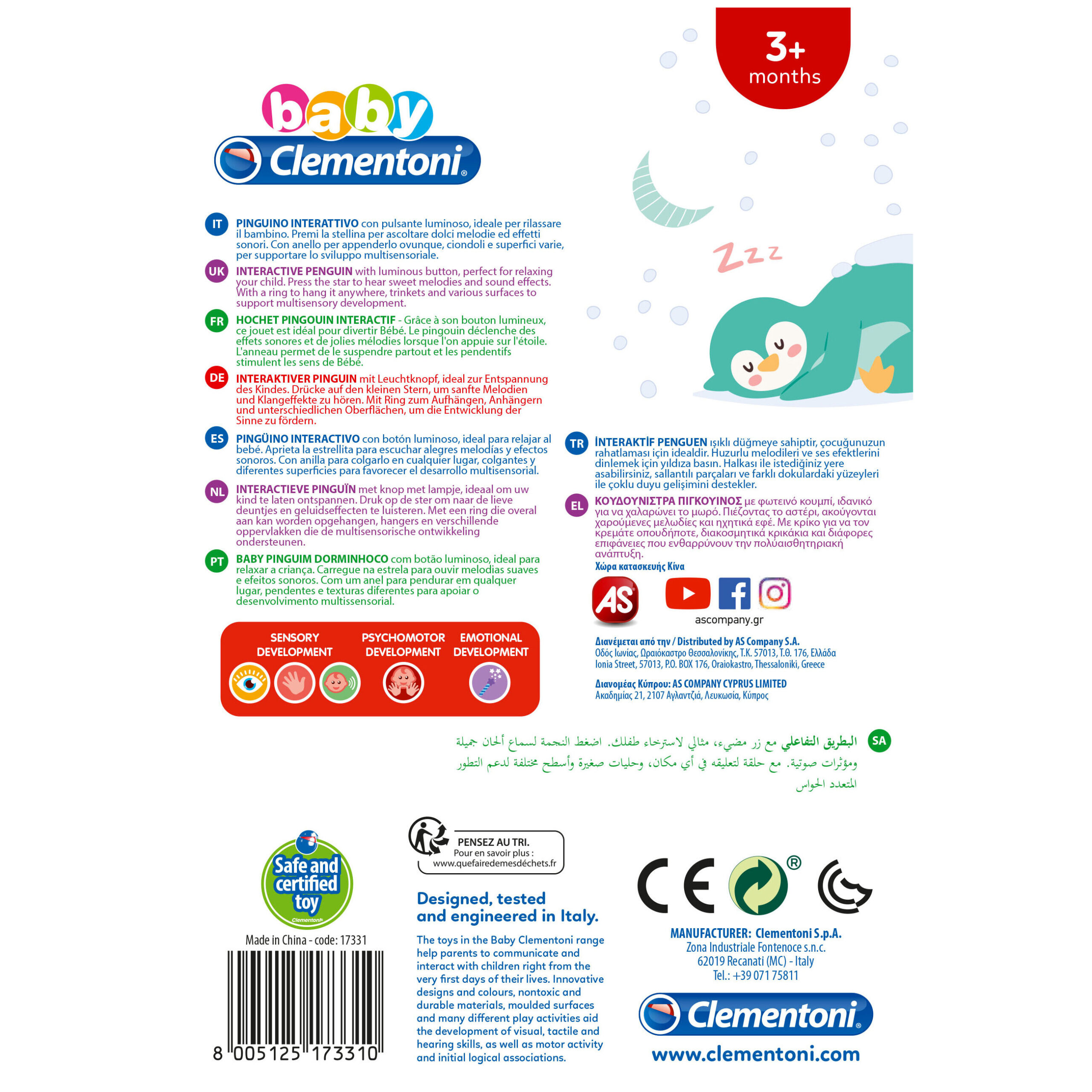 Baby Clementoni Βρεφική Ηλεκτρονική Κουδουνίστρα Πιγκουίνος Για 3+ Μηνών
