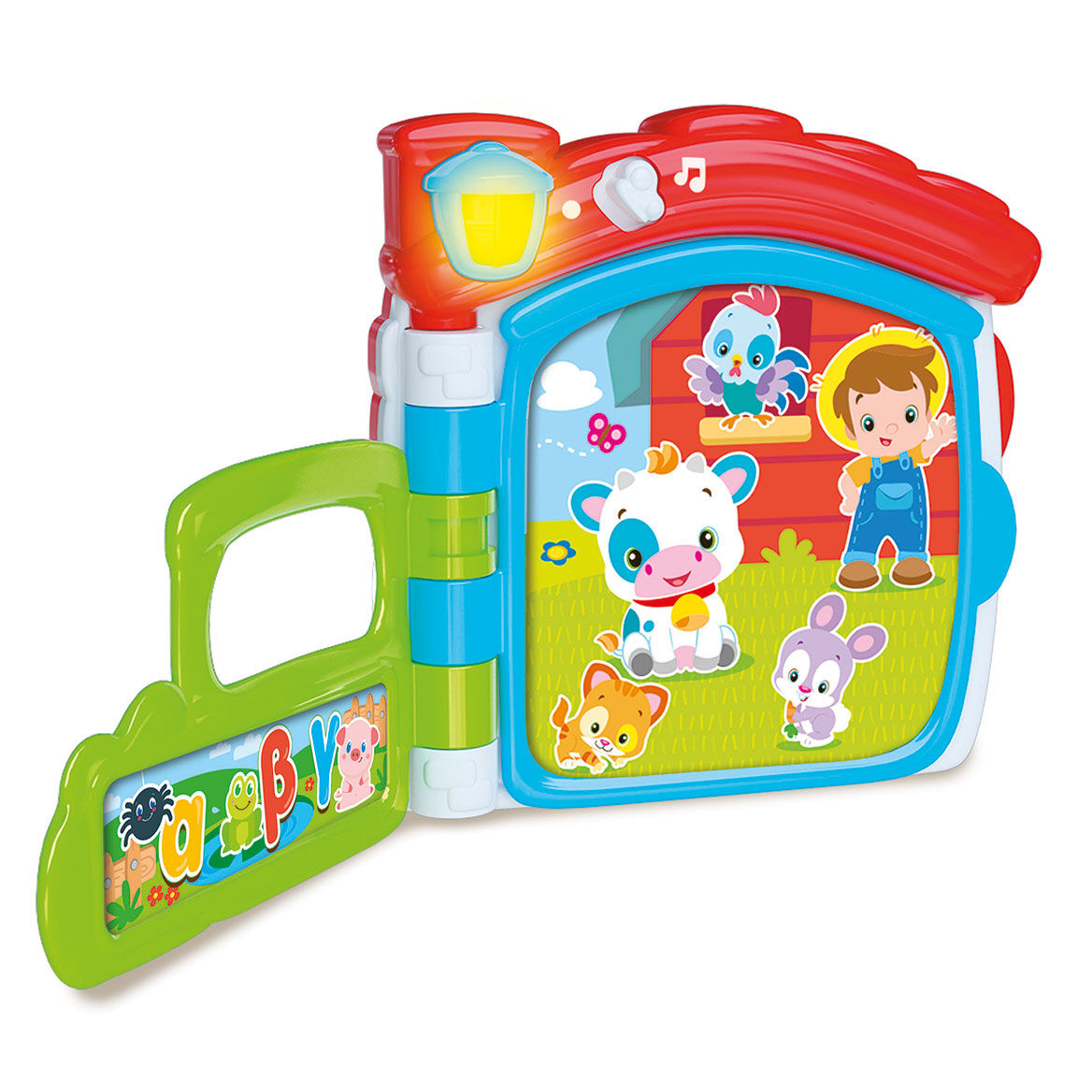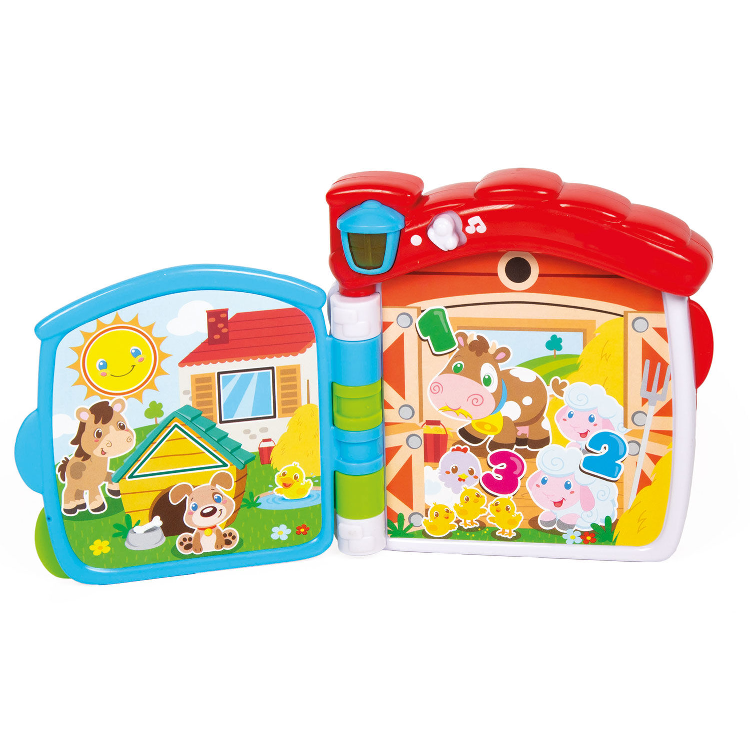 Γυρνώντας τις σελίδες και πατώντας το κουμπί με το φως στην οροφή του φάρμας, το παιδί μπορεί να γνωρίσει τα ζώα και τους ήχους τους, να ανακαλύψει τα πρώτα γράμματα, τους αριθμούς και τα σχήματα.