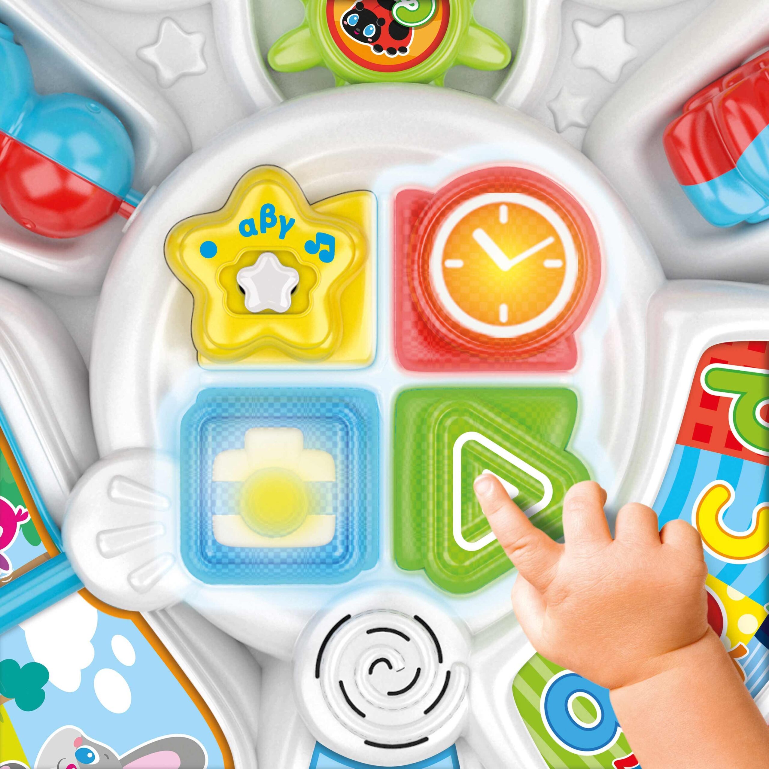 Καλώς ήρθατε στον κόσμο της μάθησης με το Τραπέζι Δραστηριοτήτων – Οι πρώτες μου Γνώσεις! Με πολλές διασκεδαστικές δραστηριότητες σε όλες τις γωνίες του για να απασχολεί το παιδί όλη μέρα! Μαθαίνει τα γράμματα, τους αριθμούς, τα σχήματα, τα χρώματα και τα ζωάκια. Μπορεί να παίξει επίσης μουσική αλλά και να ακούσει μελωδίες και ποιηματάκια.
