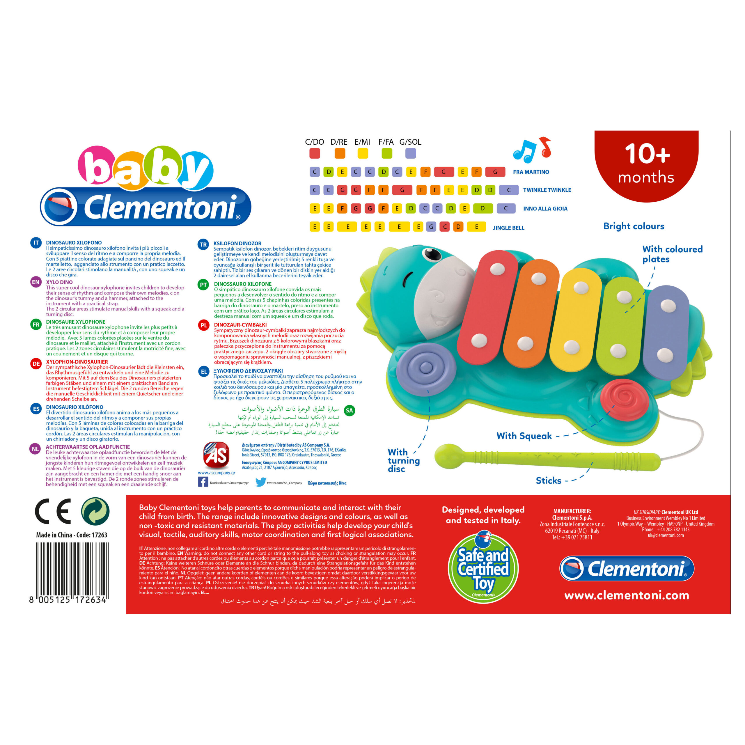 Baby Clementoni Βρεφικό Μουσικό Ξυλόφωνο Δεινοσαυράκι Για 18+ Μηνών