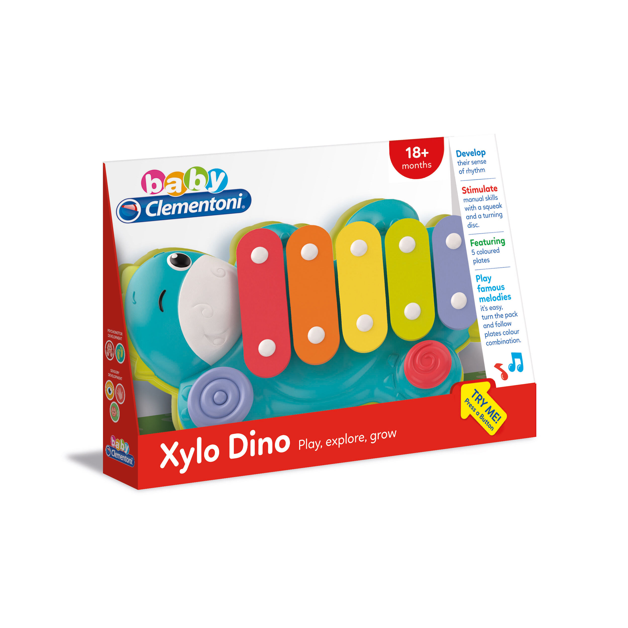 Τα παιχνίδια της σειράς Baby Clementoni βοηθούν τους γονείς να επικοινωνούν και να αλληλεπιδρούν με το μωρό από τις πρώτες ημέρες της ζωής του. Με καινοτόμο σχεδιασμό και χρώματα, μη τοξικά και ανθεκτικά υλικά, καθώς και με ανάγλυφες επιφάνειες και πολλές δραστηριότητες ευνοούν την ανάπτυξη των οπτικών, απτικών και ακουστικών ικανοτήτων, την κινητική δραστηριότητα και τους πρώτους λογικούς συσχετισμούς.