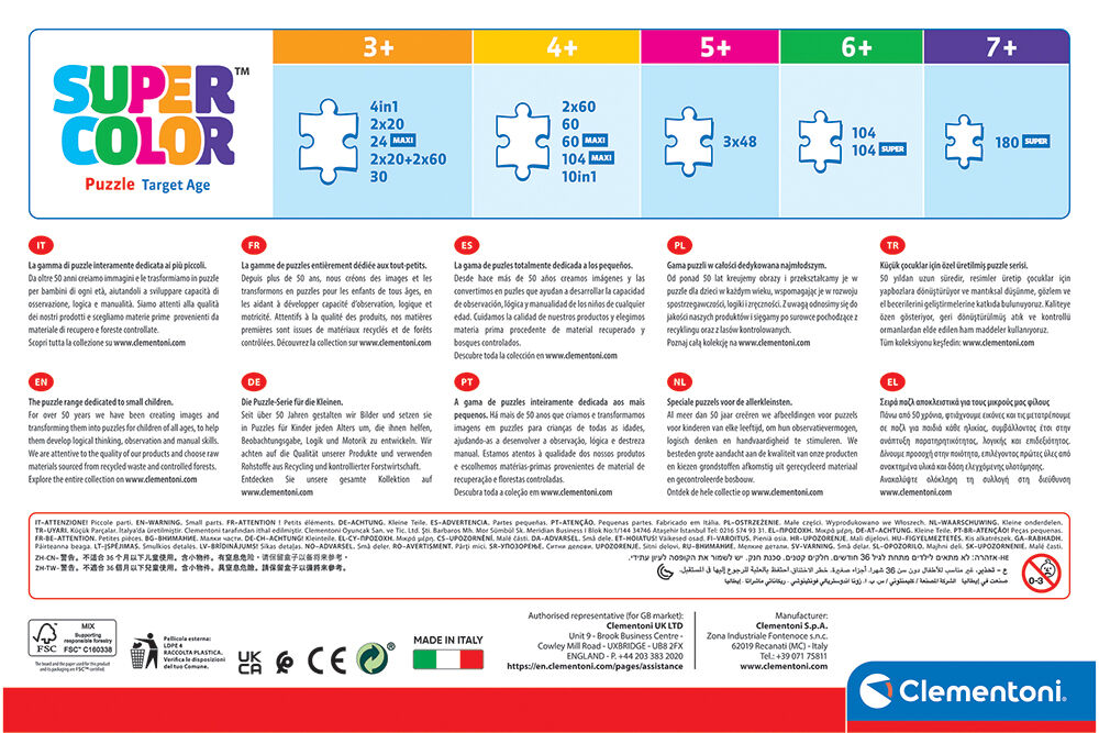 Clementoni Παιδικό Παζλ Maxi Super Color με θέμα Disney Stitch. Τα διακριτικά φινιρίσματα και τα πρωτότυπα εφέ μετατρέπουν το κλασικό παιδικό χόμπι σε μια σύγχρονη, συναρπαστική εμπειρία παιχνιδιού. Μοναδικές δημιουργίες που μπορούν να χρησιμοποιηθούν για να διακοσμήσουν την παιδική κρεβατοκάμαρα. Μια τεράστια ποικιλία από παζλ ειδικά σχεδιασμένα για παιδιά για να τα βοηθήσουν να βελτιώσουν την παρατηρητικότητα τους καθώς και τις λογικές και χειρωνακτικές τους δεξιότητες. Εικόνες με ζωηρά ελκυστικά χρώματα, που απεικονίζουν τους πιο αγαπημένους χαρακτήρες των παιδιών για ώρες διασκέδασης με φίλους και οικογένεια. Τα παζλ Maxi αποτελούνται από κομμάτια που είναι μεγαλύτερα σε μέγεθος, κατάλληλα για μικρά παιδιά και συμβάλλουν στην ανάπτυξη της παρατήρησης, της λογικής και των χειρωνακτικών δεξιοτήτων. Συντονισμένα με τη σημασία της περιβαλλοντικής ευαισθητοποίησης, τα παζλ Clementoni φτιάχνονται με εκτεταμένη χρήση ανακυκλωμένων υλικών, αποφεύγοντας παράλληλα τη χρήση από τυχόν συστατικά που περιέχουν ρύπους.