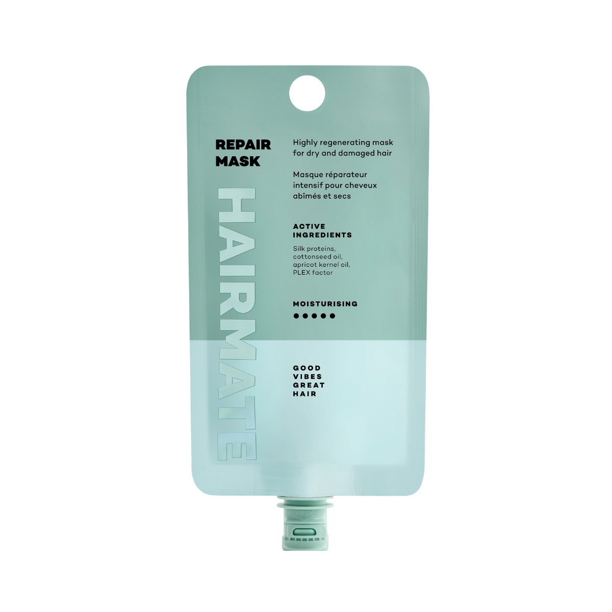 Η REPAIR MASK είναι ένα αναζωογονητικό ελιξίριο μαλλιών που αναγεννά αποτελεσματικά και εντατικά τα μαλλιά, ακόμη και όταν είναι σοβαρά κατεστραμμένα. Το προϊόν εξασφαλίζει γρήγορη και αποτελεσματική αναδόμηση της τρίχας, καθώς και κλείσιμο των λεπίδων της τρίχας, ενώ παράλληλα υποστηρίζει ενεργά την ανανέωσή της. Η χρήση του οδηγεί σε ενίσχυση της δομής της τρίχας και μείωση της ευθραυστότητάς της. Η φόρμουλα δεν περιέχει θειικά ή parabens.