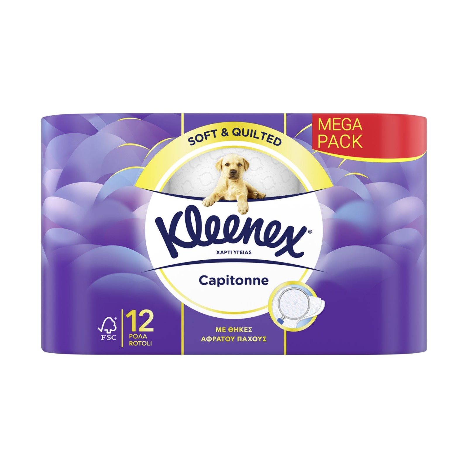 Ρολό χαρτί υγείας 12 τεμαχίων. Το μοναδικό Kleenex Capitone είναι ειδικά σχεδιασμένο για να σας προσφέρει την φροντίδα που σας αξίζει. Είναι μαλακό, ανθεκτικό και απαλό με το δέρμα σας. Δερματολογικά ελεγμένο.