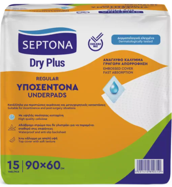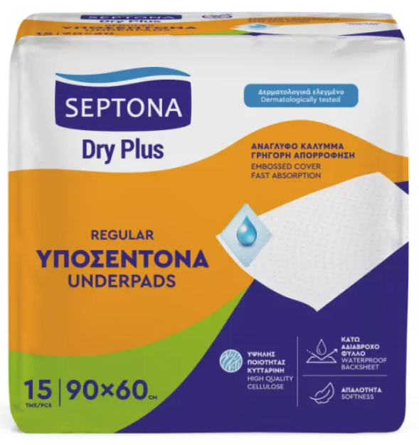 Septona Υποσέντονα Dry Plus Regular Μιας Χρήσης 15τεμ (60Χ90)